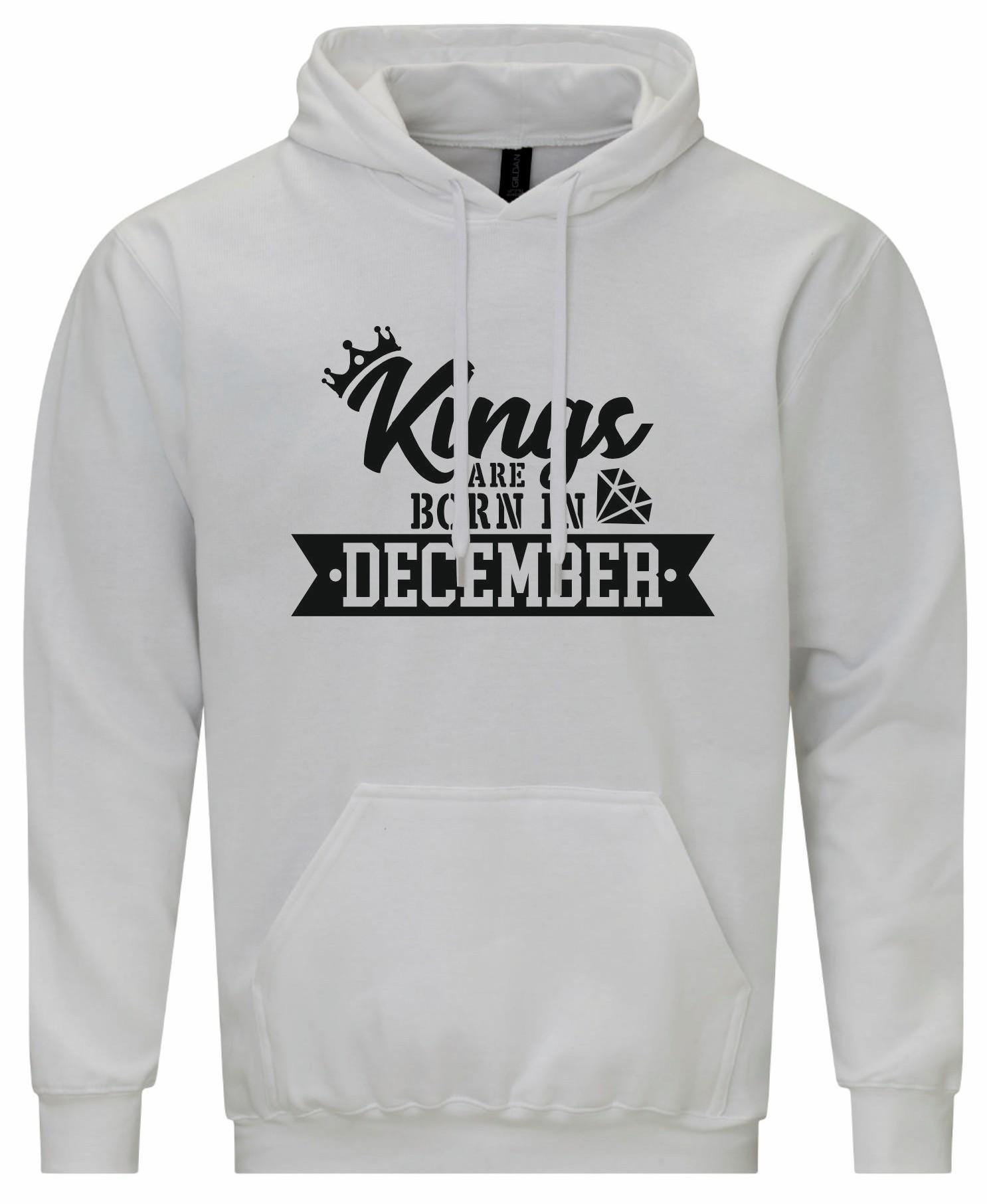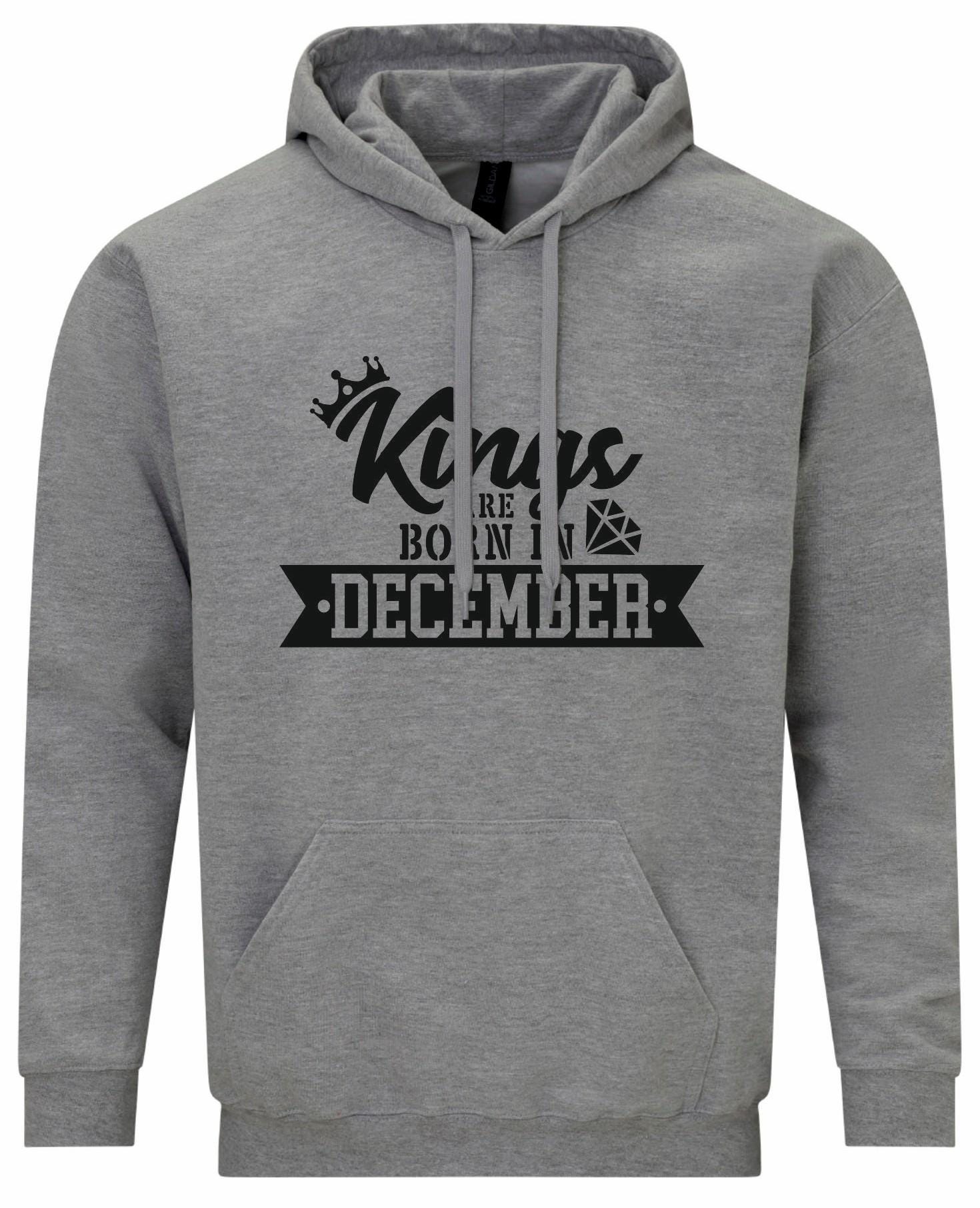 Celebrate royalty with the "Kings Are Born in December" hoodie! Made from soft, premium fabric, this hoodie offers a comfortable, relaxed fit perfect for showcasing your December pride. The bold and regal "Kings Are Born in December" graphic adds a touch of style and confidence, making it an ideal choice for birthday celebrations or casual wear. Stay cozy and let the world know your birth month reigns supreme!