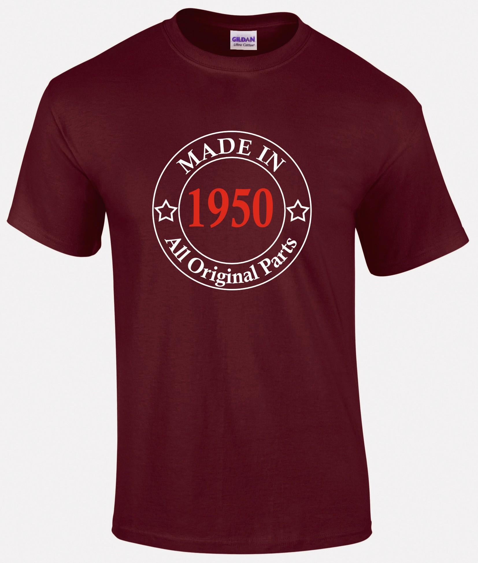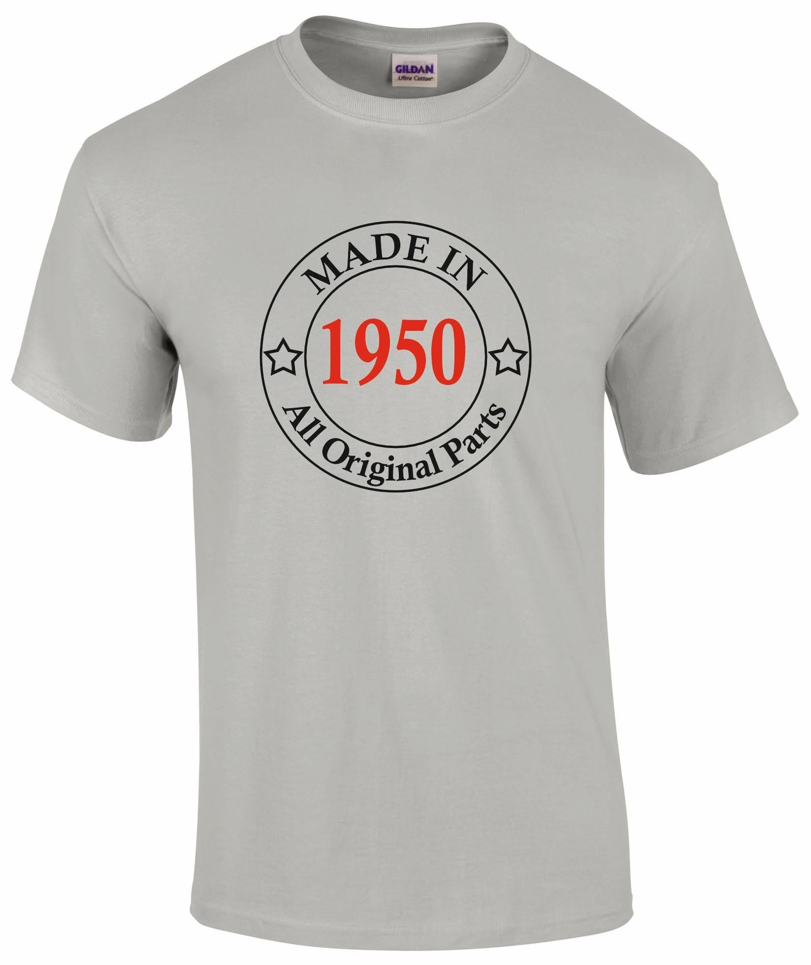 Celebrate timeless quality with the "Made In 1950's All Original Parts" t-shirt! Perfect for those born in the classic 1950s, this t-shirt features a fun and vintage-inspired design that proudly showcases your era and originality. Made from soft, high-quality fabric, it offers a cozy, relaxed fit ideal for casual wear or staying warm in style. Embrace your roots and show the world you’re a true classic—all original parts included!