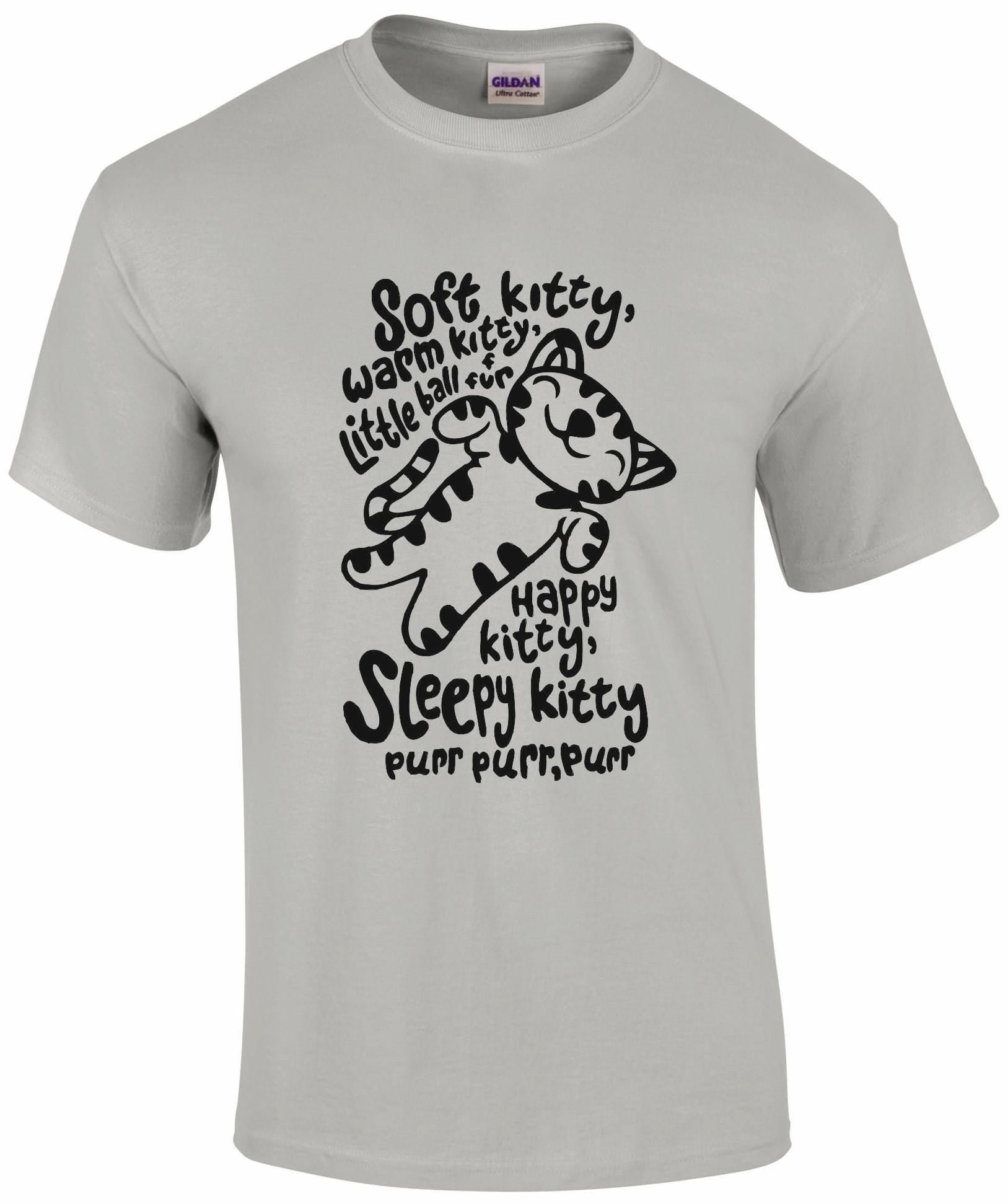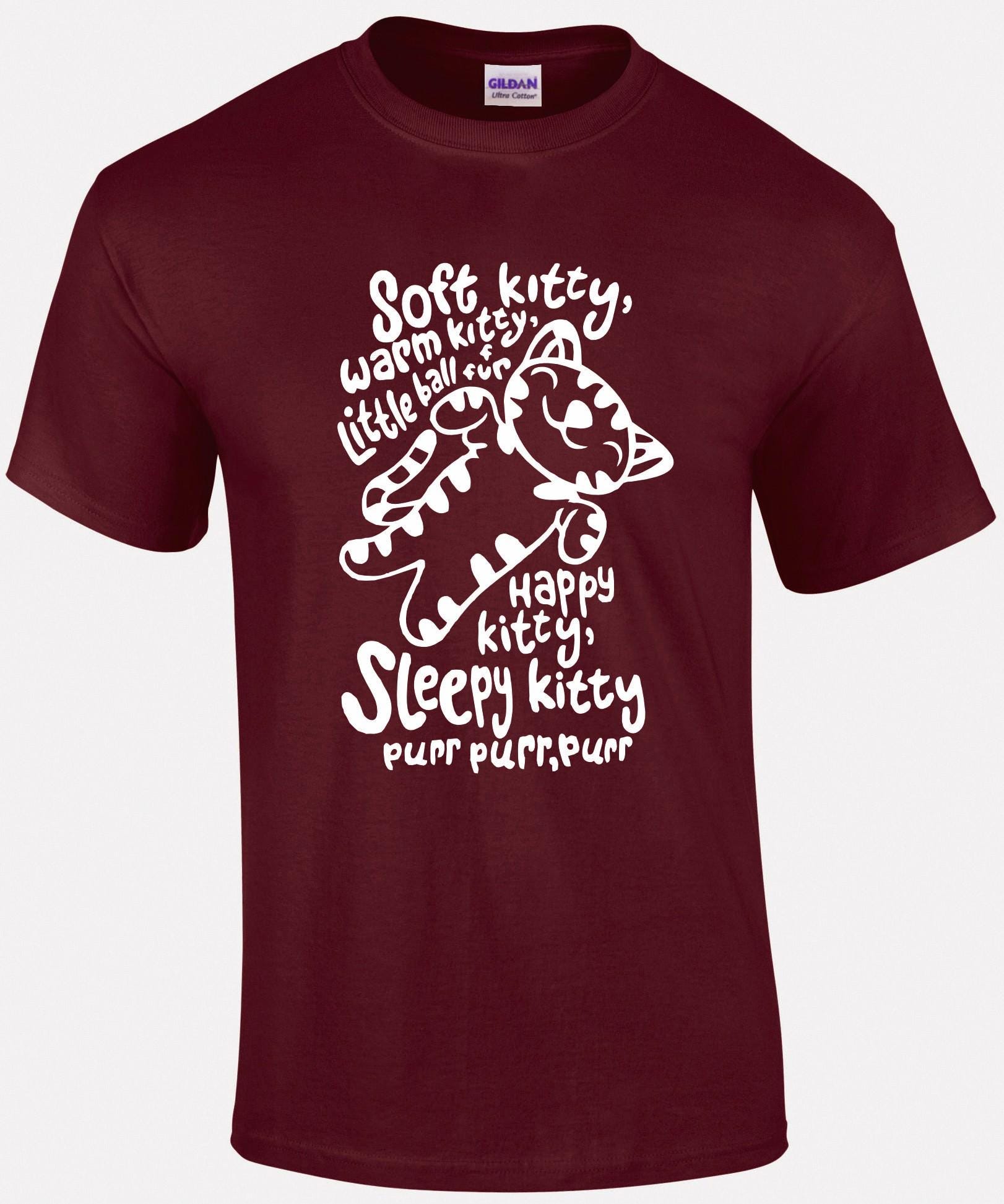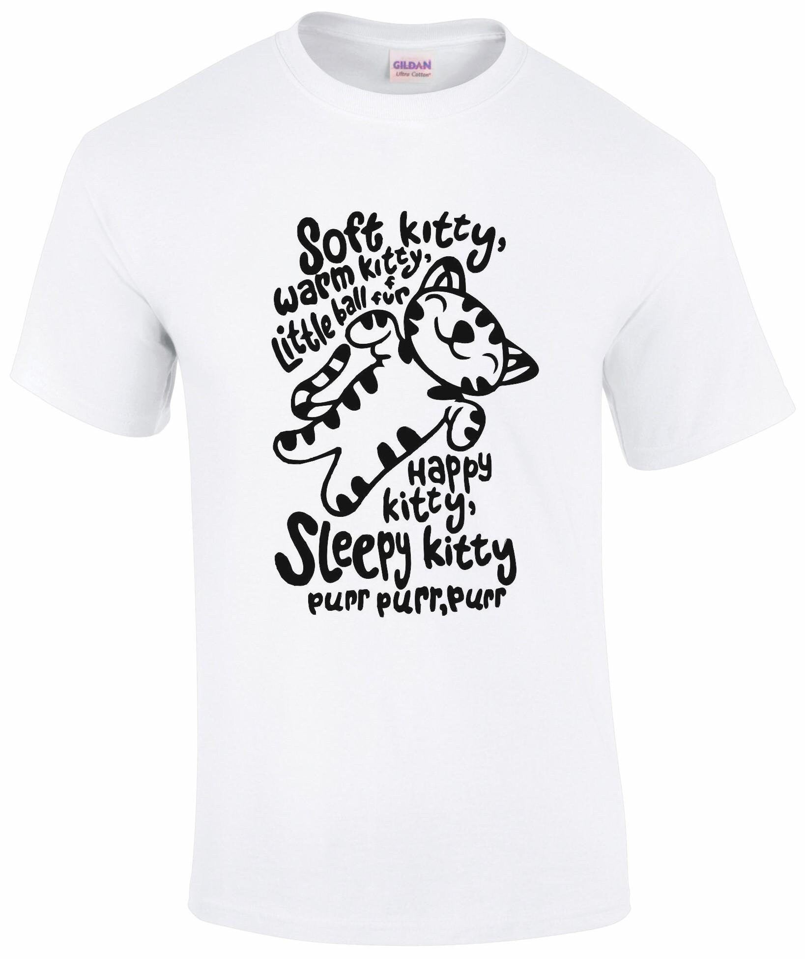 Snuggle up in comfort with the "Soft Kitty, Warm Kitty" T-shirt. Made from soft, premium cotton, this tee offers a relaxed unisex fit, perfect for fans of the iconic lullaby. The "Soft Kitty, Warm Kitty" graphic brings a touch of warmth and nostalgia, ideal for cat lovers or anyone who appreciates a cozy vibe. Perfect for casual wear, lounging at home, or as a thoughtful gift, this shirt combines comfort with a heart warming, familiar message that’s sure to bring a smile.